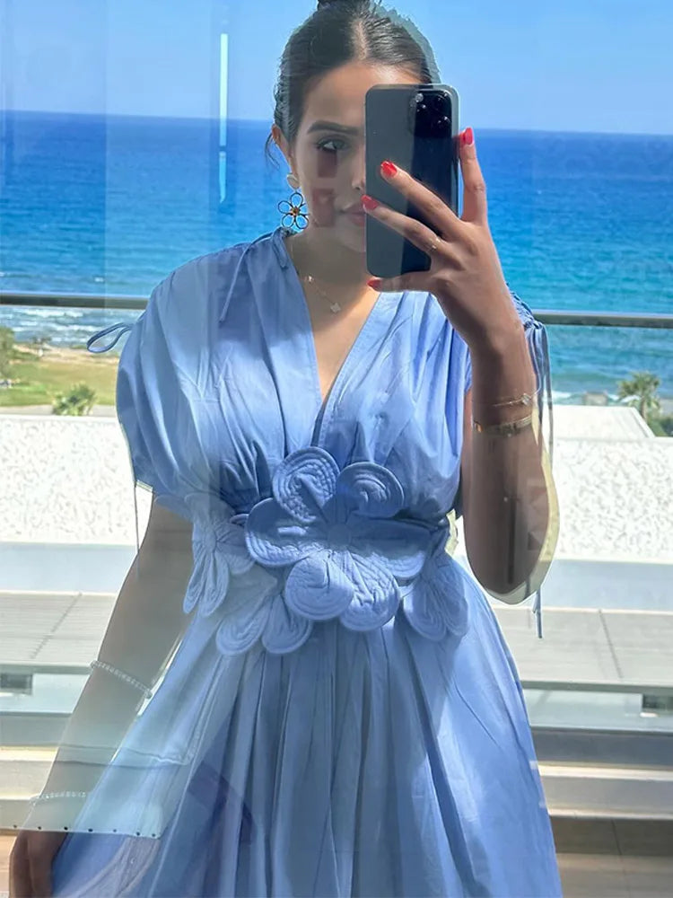 Stacey – Schickes Maxikleid mit Blumenmuster und V-Ausschnitt ist die ideale Wahl für Frauen, die stilvoll auffallen möchten. Der tiefe V-Ausschnitt, kombiniert mit einem eleganten Blumenprint, sorgt für einen femininen Look, der Leichtigkeit und Raffinesse ausstrahlt – perfekt für besondere Anlässe oder sommerliche Tage.
