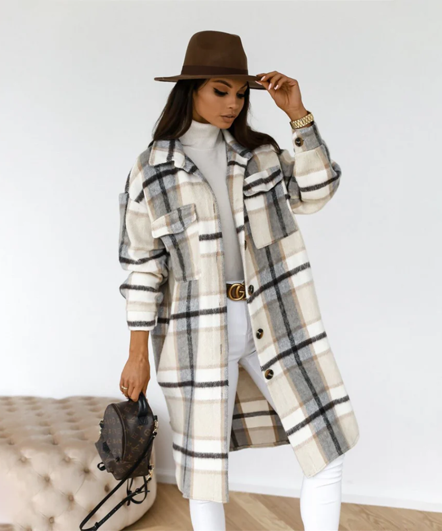 damen-karierter-lange-winterjacke-mantel