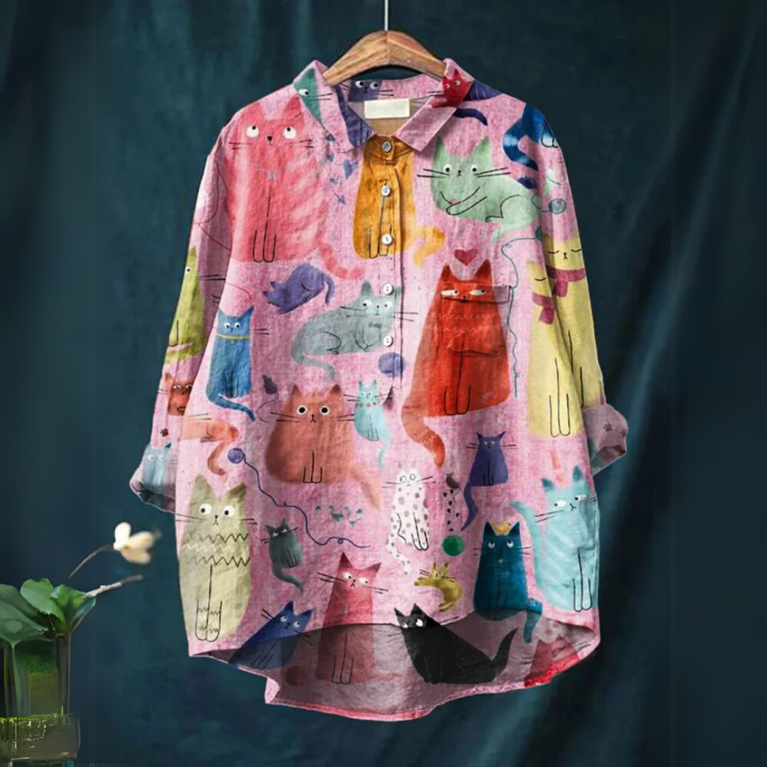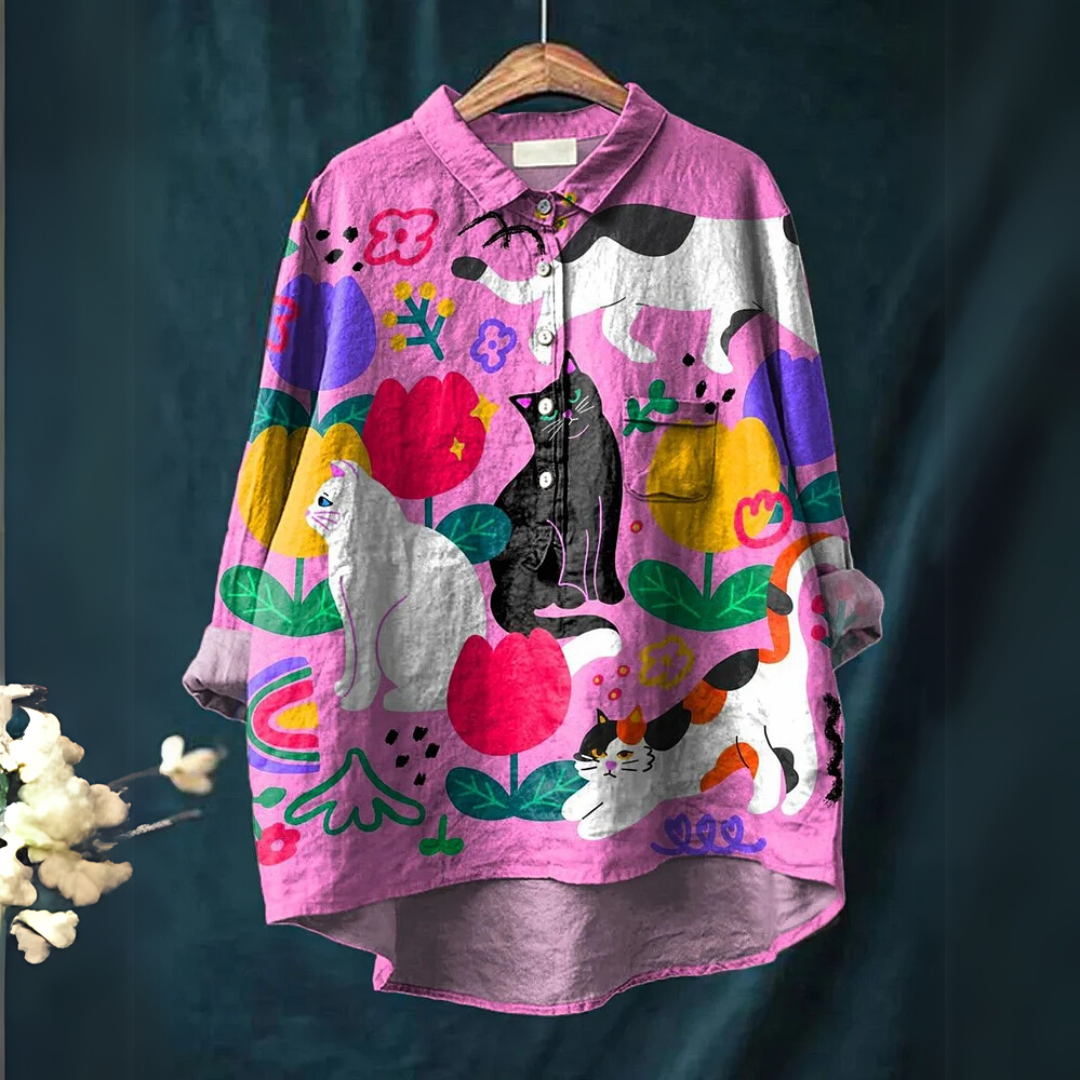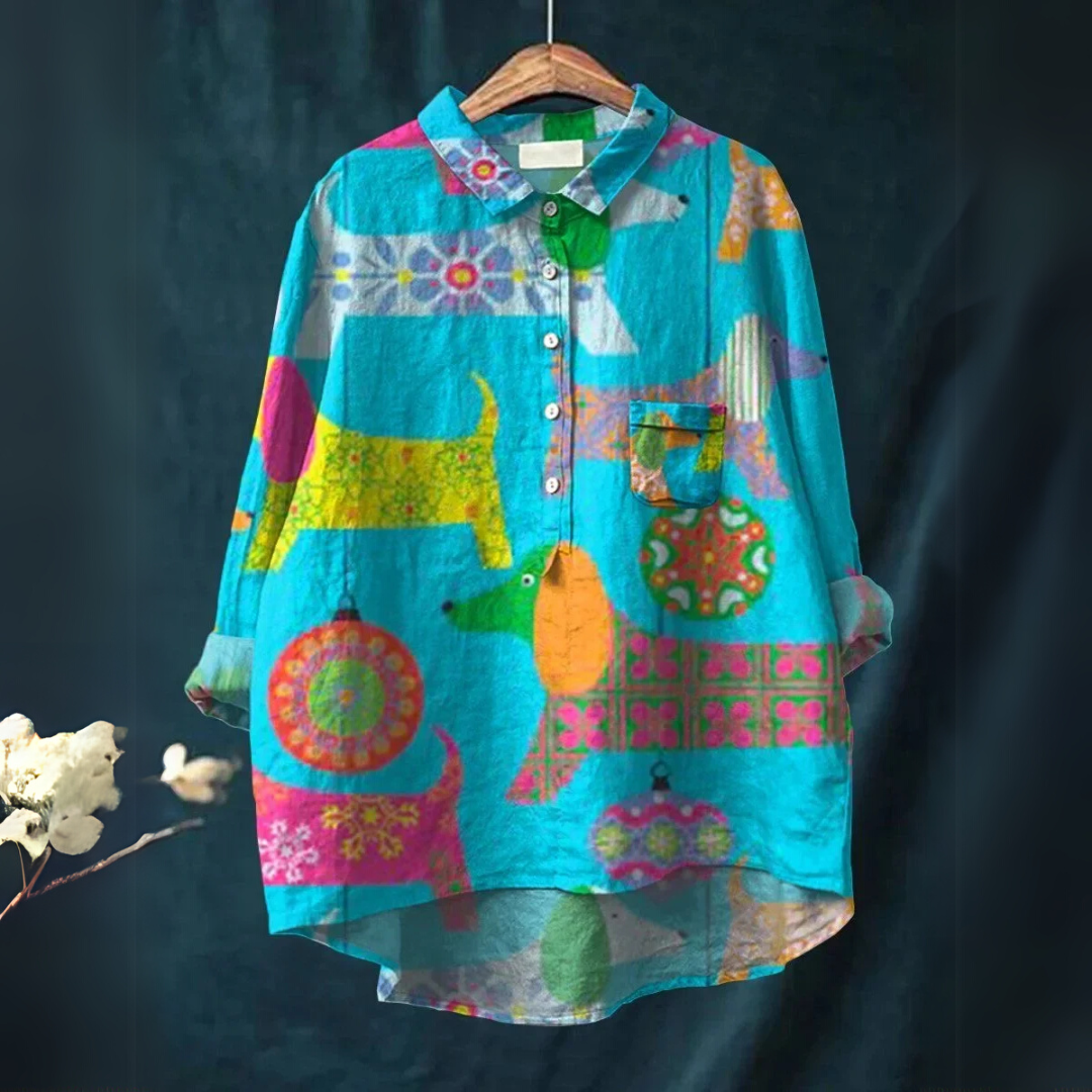 • Design: Einzigartiger Kunstdruck mit klassischem Kragen und über Hüfthöhe