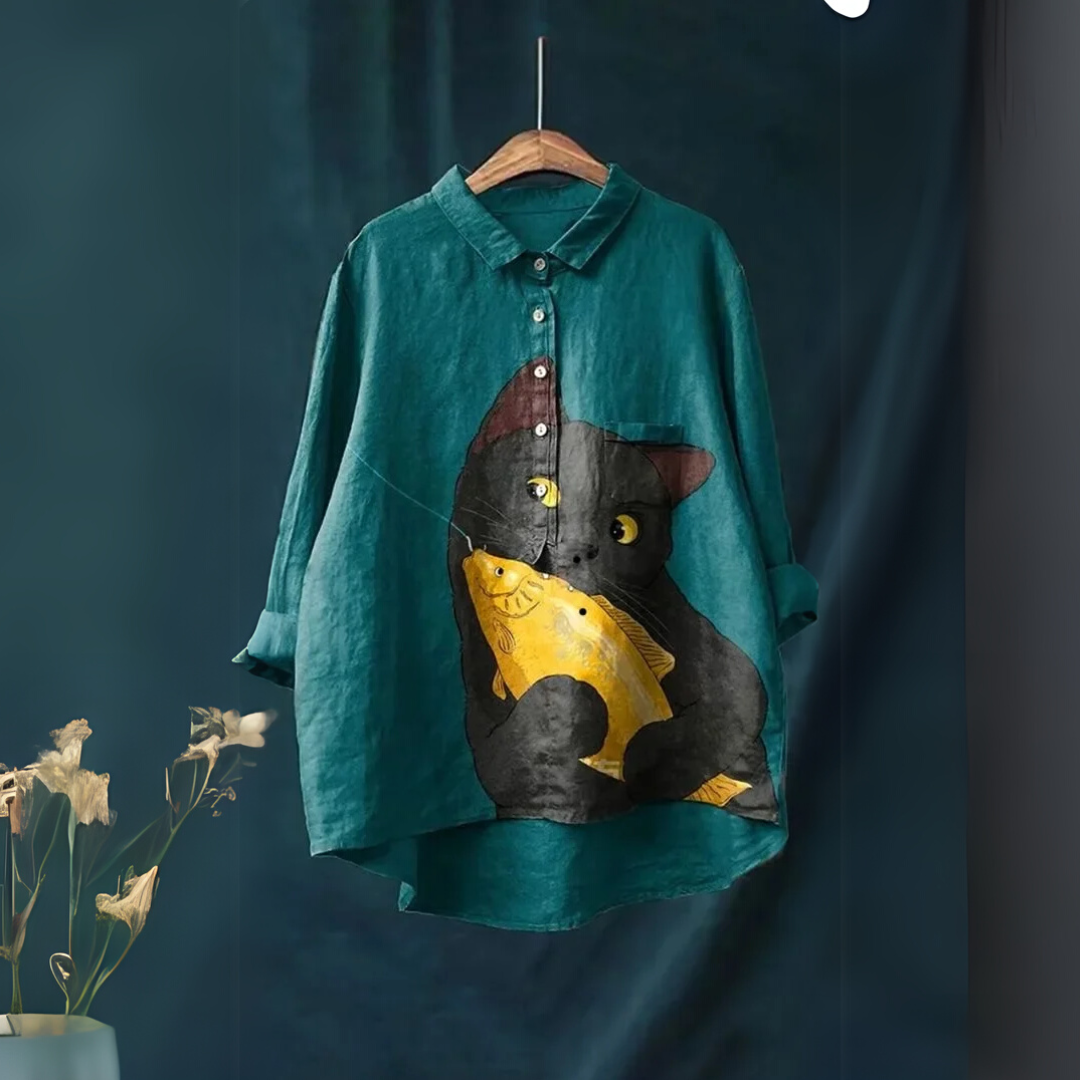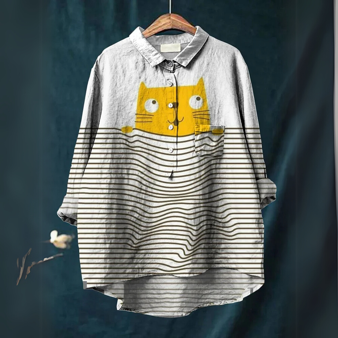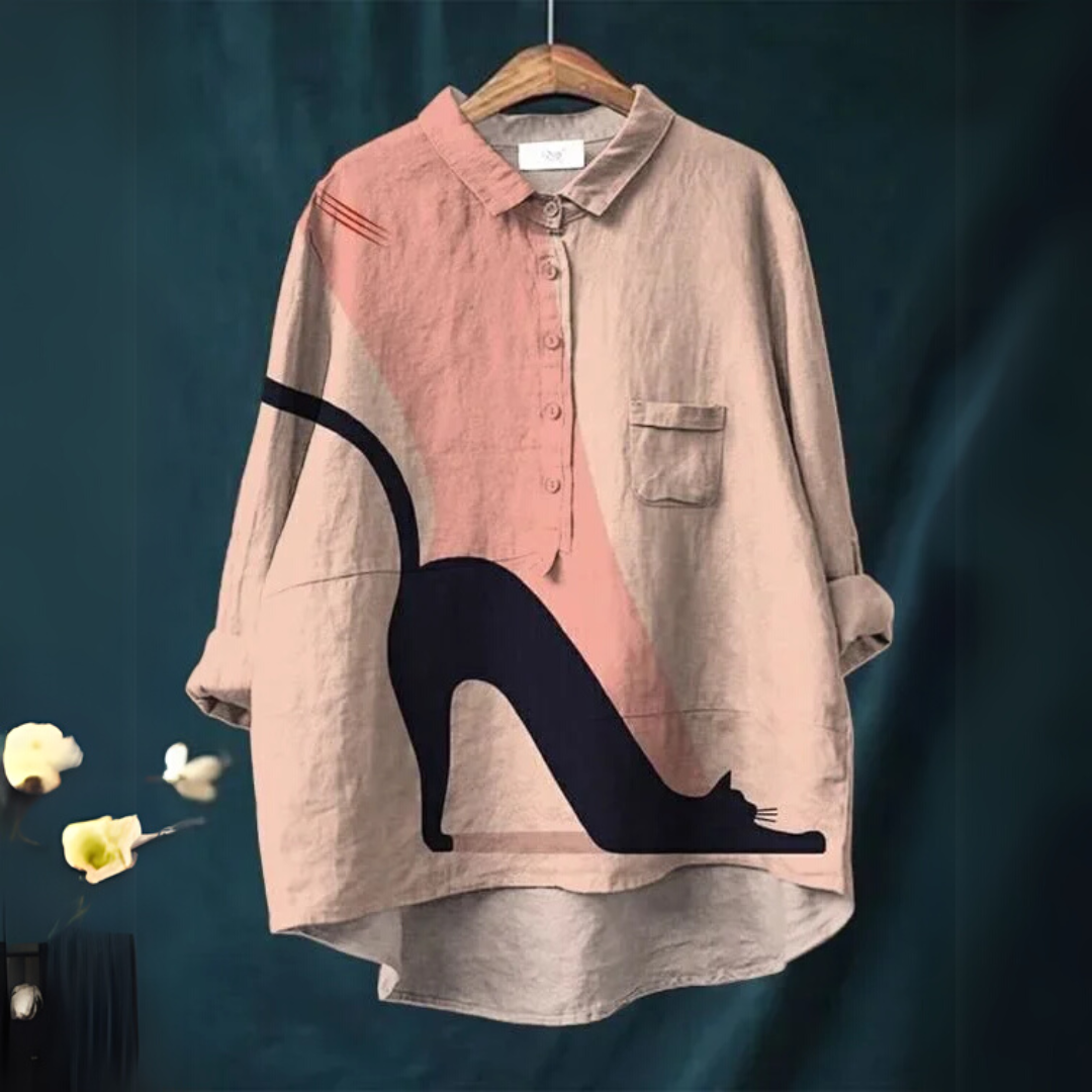 • Design: Einzigartiger Kunstdruck mit klassischem Kragen und über Hüfthöhe