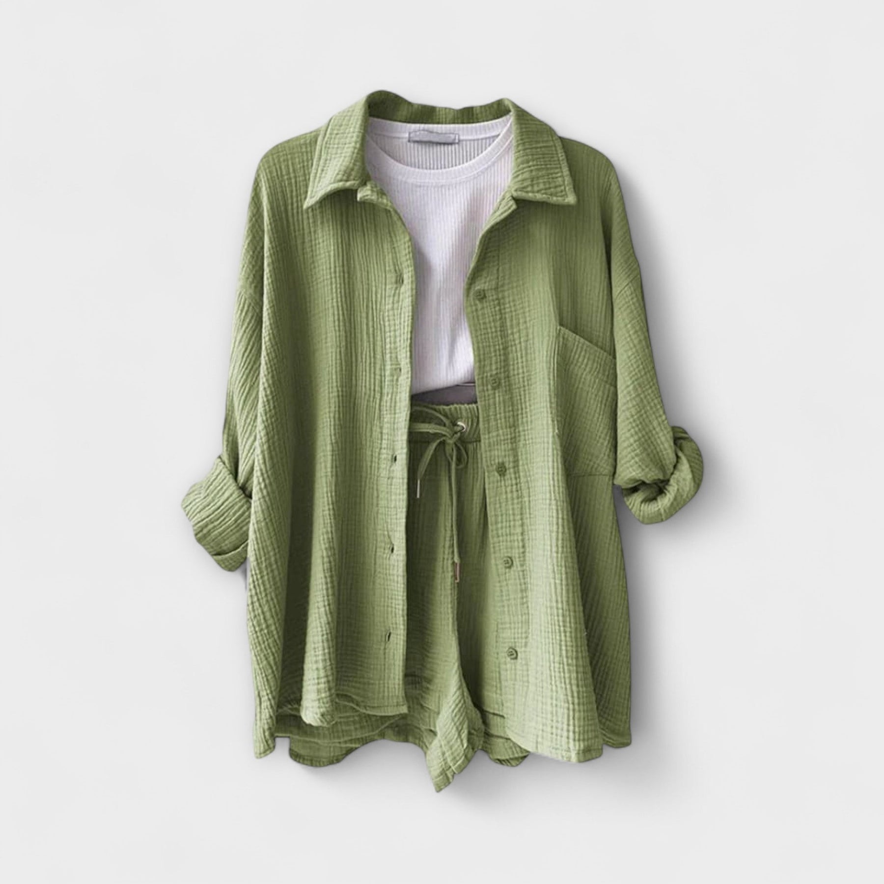 Victoria | Bequemes 2-teiliges Set ist die perfekte Kombination aus Komfort und Stil für deine Garderobe. Ideal für warmes Wetter, besteht dieses Set aus atmungsaktiven Stoffen und einem vielseitigen, eleganten Design. Egal, ob du am Pool entspannst oder einen lässigen Ausflug machst, dieses Set bietet eine schmeichelhafte Passform, die dich den ganzen Tag kühl und selbstbewusst hält.